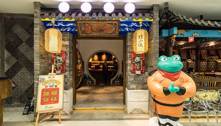 整個門店存在和互動的IP形象打造,就餐環境更為舒適(社交需求),蛙小俠就專注在這方面,以武俠IP植入,形成了個性化的空間藝術,只是這個武俠IP缺乏獨創性,是抄襲功夫熊貓的,不會持久;