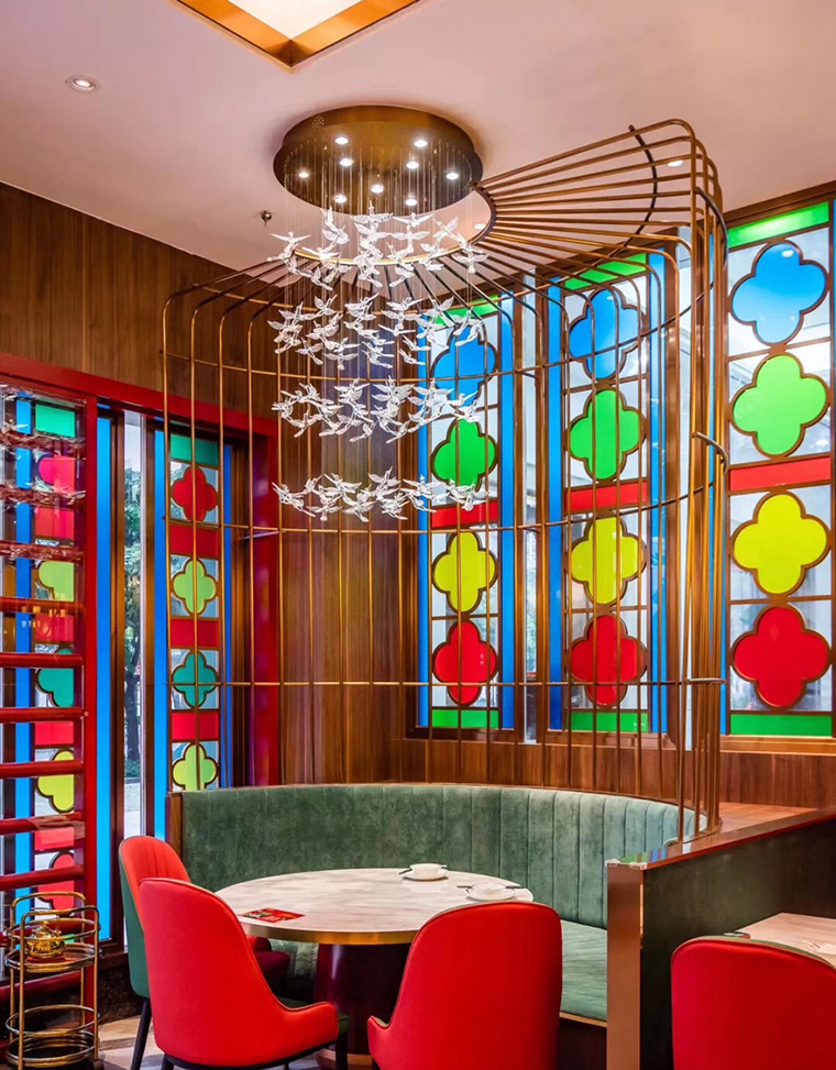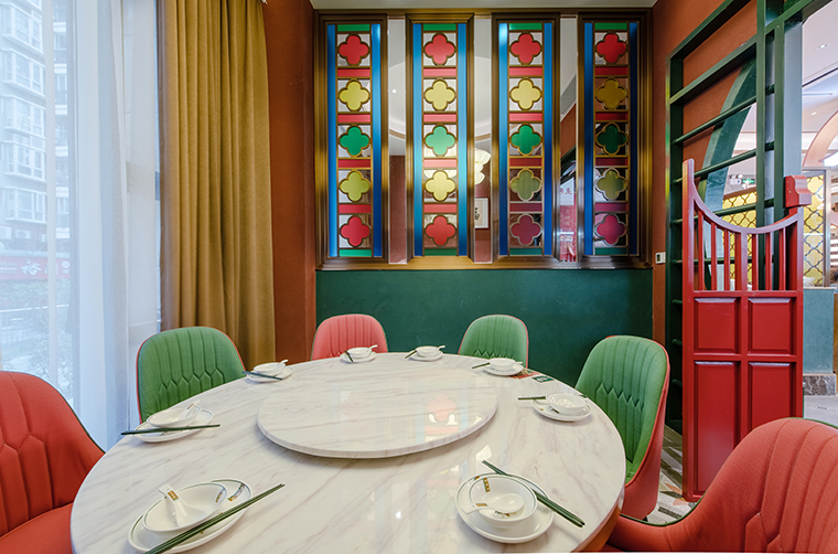 中,我們將廣式花窗大面積使用在正面形象,進(jìn)門(mén)口,包房隔斷等,形成了強(qiáng)烈的視覺(jué)沖擊力,具有鮮明的品牌感。