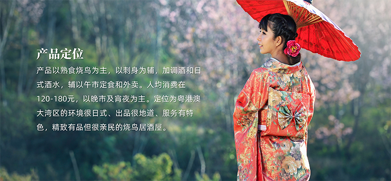 人均消費在120-180元,以晚市及宵夜為主。定位為粵港澳大灣區的環境很日式、出品很地道、服務有特色,精致有品但很親民的燒鳥居酒屋。