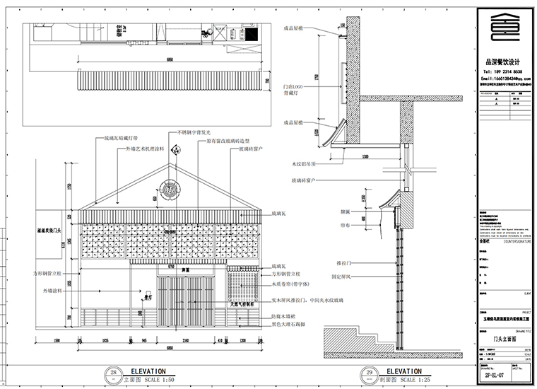 1、門頭及外立面設計:門頭是門店吸引顧客進店的指示牌,在空間展示中占的比例最高。品深餐飲設計總結的門頭設計三大原則。