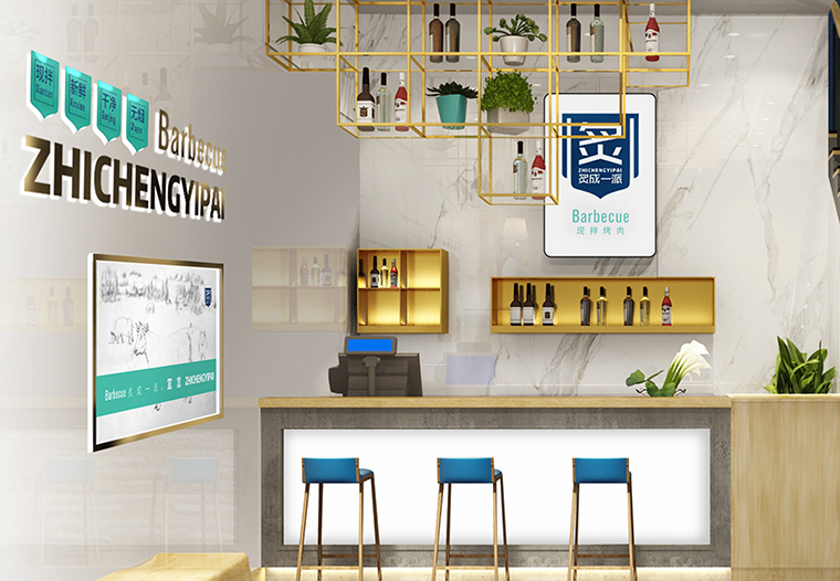炙成一派是海口一家以現拌現烤為特色的炙子烤肉店。品深餐飲全案策劃設計認為空間裝飾裝修設計是品牌形象整體落地的核心環節。