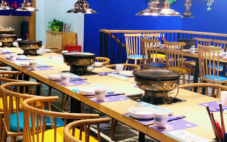 海口首家炙子烤肉空間裝飾裝修設計、烤肉店軟裝設計、烤肉店品牌形象植入、門店平面布局設計、烤肉店門店燈光設計。