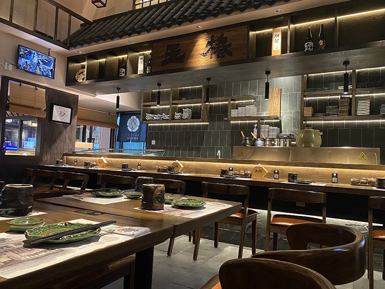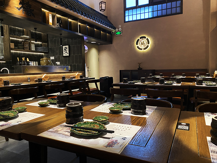 相對于其他日本料理,溫暖治愈有煙火氣的居酒屋是打開心門的神奇鑰匙。在這里,可以褪下面具,卸下防備,輕松肆意地喝酒聊天,大聲談笑,沒有職場的煩惱,沒有生活的瑣碎,有的是伴隨冰涼的鮮啤入喉部之后的片刻歡愉,有的只是一個釋放自我的放空間。居酒屋的熱鬧感,燒鳥店的煙火氣,京都老店的歷史文化魅力,是品深設計團隊重點突破的設計表達。